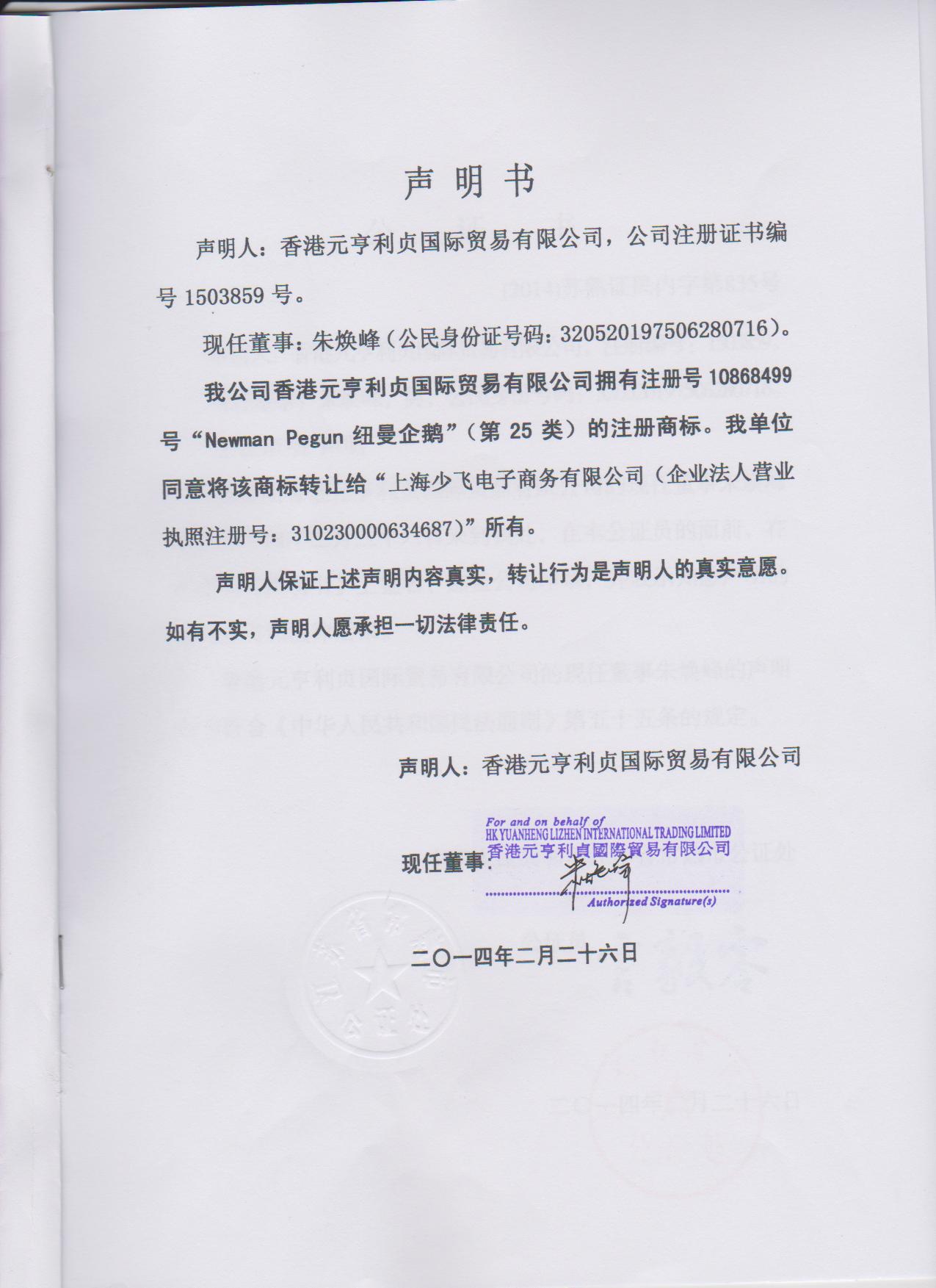 3、 辦理公證,支付余款:商標持有人攜帶商標證等相關證件到公證處辦理商標轉讓聲明公證,3-7個工作日左右取得《公證書》由買家確認后支付余款。