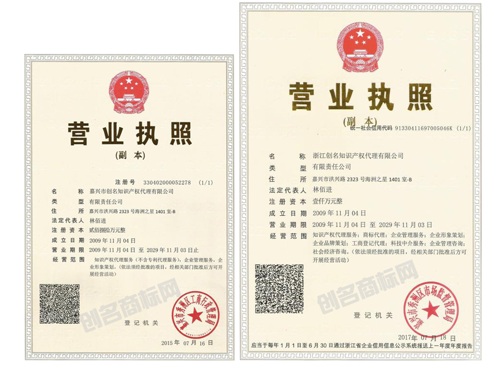 熱烈祝賀嘉興市創(chuàng)名知識(shí)產(chǎn)權(quán)代理有限公司升級(jí)為浙江創(chuàng)名知識(shí)產(chǎn)權(quán)