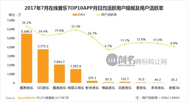 根據(jù)2017年在線音樂APP最新報(bào)告顯示,音樂APP日活排名前三的均為騰訊音樂娛樂集團(tuán),分別是酷狗音樂、QQ音樂、酷我音樂,網(wǎng)易云音樂排名第4,蝦米音樂排名第5。