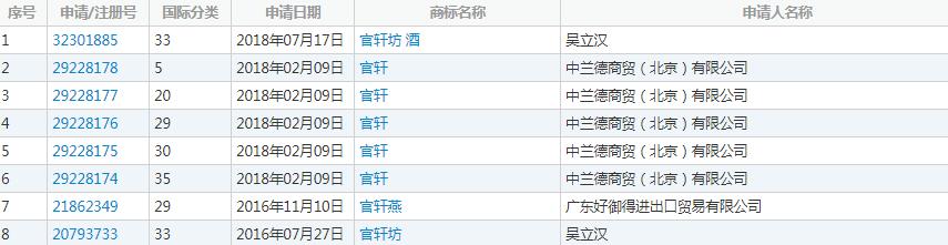 根據(jù)國家商標查詢,不止“官宣”被注冊成商標,連讀音相近的“官軒”都被注冊了。