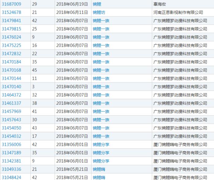 在目前可以查詢到的申請記錄里,提交注冊的商標類別多種多樣,按照以往的慣例,一旦某個詞火起來后,就會有大批量的商標注冊提交上去,按“錦鯉”火的程度,你晚提交一分鐘,都可能因商標注冊在先原則而被駁回。