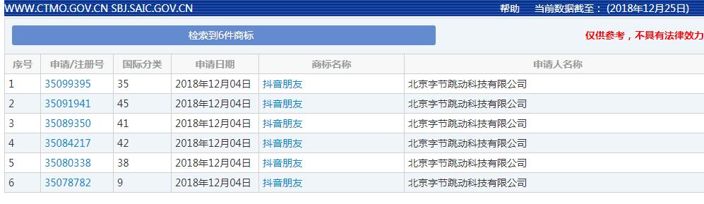 12月27日消息 “今日頭條”母公司北京字節(jié)跳動(dòng)科技有限公司于12月4日提交了一份名為“抖音朋友”的商標(biāo)申請,申請?zhí)枮?5091941,該商標(biāo)國際分類為社交、法律服務(wù)類,目前處于“申請收文”狀態(tài)。