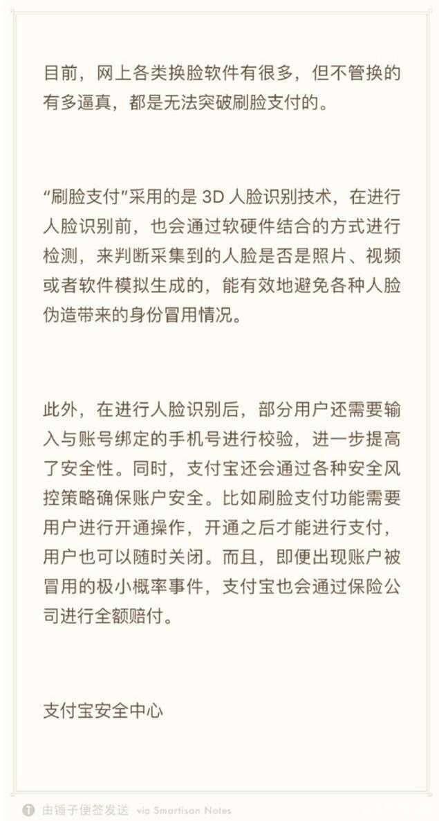 于是有不少網(wǎng)友開始擔(dān)心換臉之后會(huì)否出現(xiàn)財(cái)產(chǎn)風(fēng)險(xiǎn),比如被他人盜刷財(cái)產(chǎn)等問題。支付寶上不是有刷臉支付功能的么,所以很多網(wǎng)友擔(dān)心“ZAO”的出現(xiàn)可能會(huì)讓不法分子利用這種換臉技術(shù),使用支付寶的刷臉支付來盜取資金。針對(duì)這個(gè)問題,支付寶安全中心于近日給出了答案。
