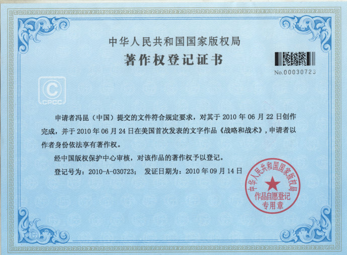 《著作權(quán)證書》是您水平的客觀反映,國(guó)家權(quán)威部分對(duì)您能力的認(rèn)可將使您在求職應(yīng)聘時(shí)更加自信。